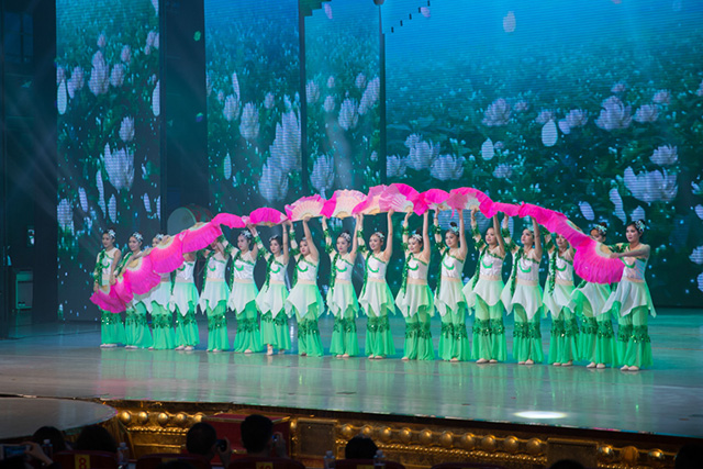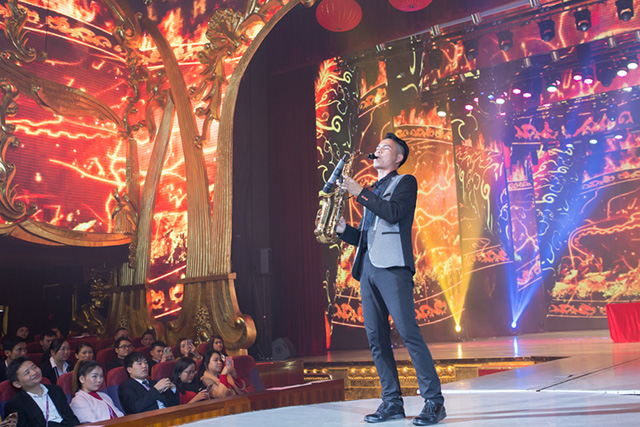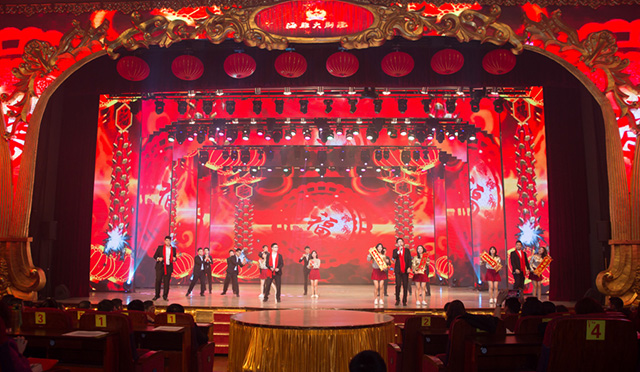 17:00时“盛世鼓舞”振奋人心的鼓点声隆隆响起,海雅集团2017年迎春联欢晚会也正式拉开序幕,本次晚会共演出十六个节目,类型包括歌舞、器乐、走秀、武术等,绝大部分都由海雅员工自己编排表演,精彩绝伦的节目和绚丽夺目的舞台效果赢得了现场观众不断的掌声。