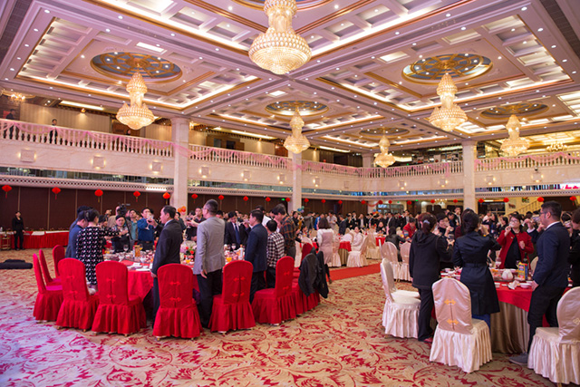 晚会结束后,集团领导和全体员工来到海雅宴会厅参加迎春晚宴,宴会厅大屏幕上滚动播出了集团总部及各分公司的拜年视频,浓浓的年味和喜庆的氛围顿时萦绕全场。集团常务副总裁范志强发表了新春贺词和祝酒词,大家共同举杯分享成功喜悦、庆祝新年到来,希望在新的一年里同心协力、再创佳绩!