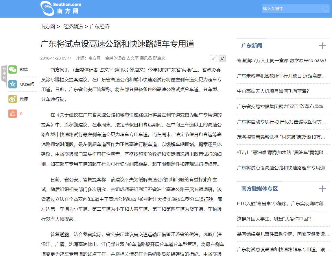 广东省政协委员、海雅集团副总裁涂尔鹏先生在今年的省两会上提交的《关于建议在广东省高速公路和城市快速路试行将最左侧车道变更为超车专用道的提案》,现已被省公安厅采纳并拟选试点。