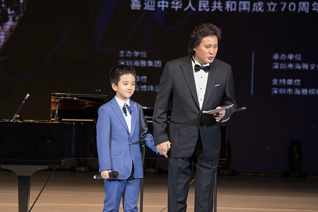一场别开生面的音乐会在戴玉强先生的引领下,顶级的歌唱演绎职业水准让深圳观众感同身受、热情昂扬,沉浸在美妙的歌声里久久不愿离去。海雅艺术团青年歌唱演员何建豪、姜林奇、李月辰展现了各自的歌唱风采,音乐会中场童声演唱嘉宾涂丁国小朋友被戴玉强先生亲切的手拉手走上台,以老带新,传承中华文化爱幼美德。涂丁国的演唱惊艳四座,现场掌声雷动。