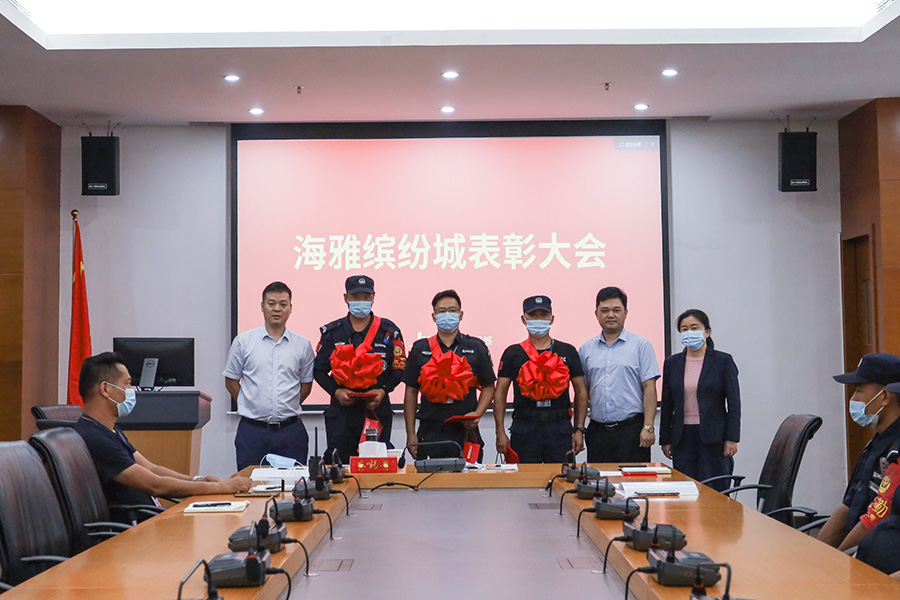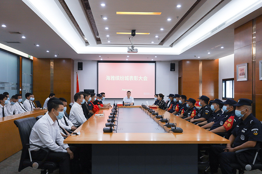 8月31日下午,海雅缤纷城总经理王伟在公司大会议室召开表彰大会。王总首先对缤纷城安检部门日常付出和八月重大节日活动现场指挥任务的圆满完成予以高度肯定和赞扬。