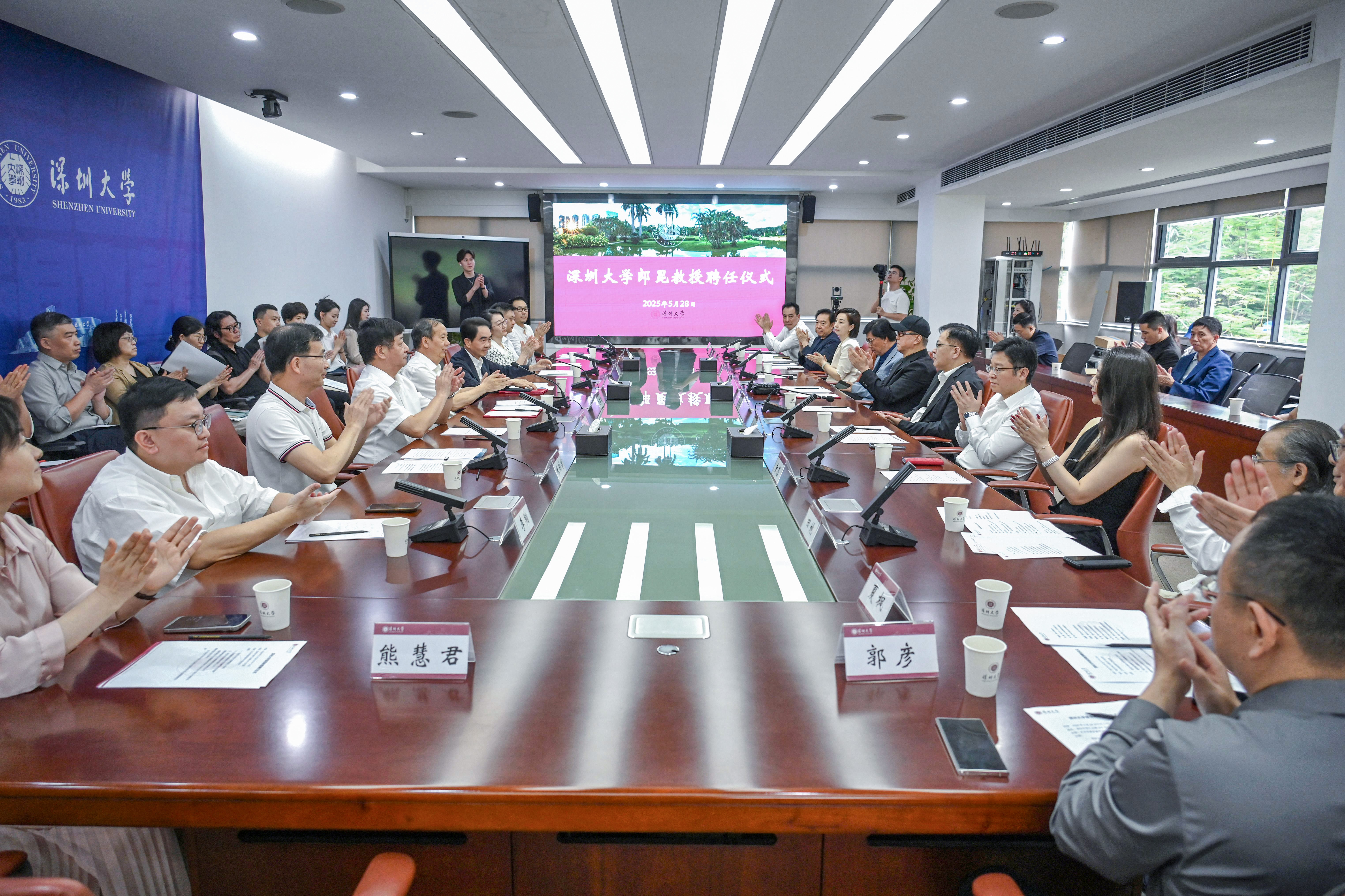 5月28日下午,深圳大学郎昆教授聘任仪式在深圳大学粤海校区举行。第十五届全国运动会和残特奥会开幕式总导演郎昆受聘为深圳大学中国文化国际传播研究院院长。仪式上,深圳大学校长毛军发向郎昆颁授聘书。