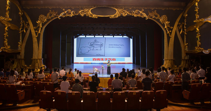 由于“海马”台风上周五登陆深圳,原定于10月21日晚举行的讲座不得不改期到25日,可是却没能阻挡听众的热情,讲座开始前半小时就有听众早早来到大剧院,还有不少家长携带自己的孩子一起来接受情商教育。在讲座过程中,廖老师的情景模拟、角色扮演、性格测试和心灵冥想等环节都让大家深深投入,跟随着老师的指引思考自己的情绪和心态,有趣的案例和观众“神演技”的角色扮演,也让现场不时爆发出开心的笑声。